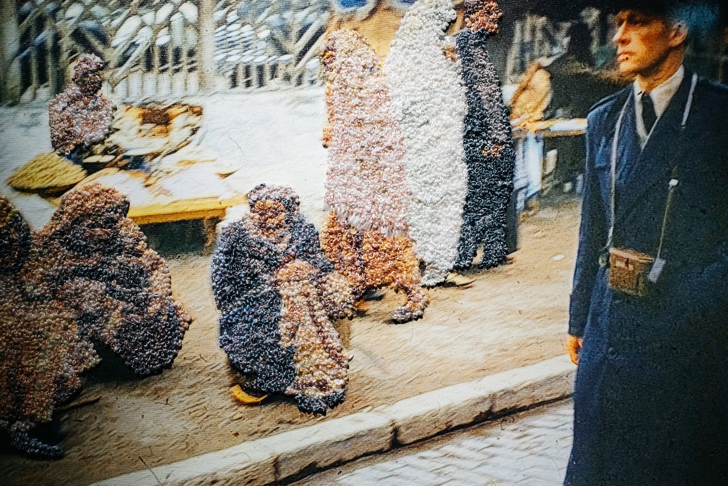 Nancy Cole, an artist based in Mi’kma’ki, the ancestral and unceded territory of the Mi’kmaw People uses the French knot embroidery stitch to explore themes of legacy, abandonment, and nostalgia. Her work balances embroidery and narrative. Trained as a journalist and photographer, she transitioned to thread art in her search for her visual voice. Her work is marked by a tedious, meditative process. The resulting artworks are both unsettling and beautiful. Through her unique fusion of mediums, Cole reveals the intricate connections that bind us to our history, encouraging a deeper reflection on the enduring strength of the human spirit.
